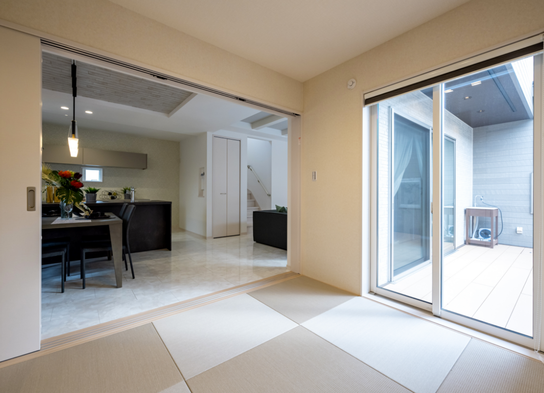 リビングからテラスにつながる動線、ウッドデッキ、開放感のある大きな窓のおかげで、休日も平日も“非日常のような”穏やかで上質な時間を過ごせています。